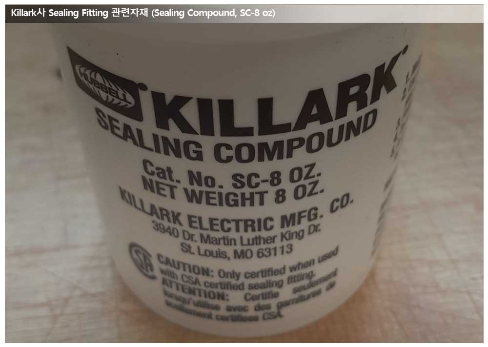 또한 Seal Fitting이 UL 인증을 받을때에는 제조사에서 인증한 제품을 사용해야 UL 인증이 유지되기 때문에 Seal Fitting을 구매하실 경우에는 해당 필수 구성품이라 할 수 있는 Compound와 Packing Fiber를 함께 구매하셔야 합니다.